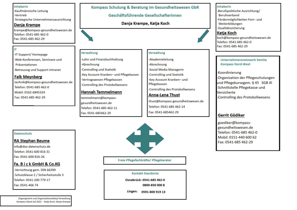 Die Firma Kompass Schulung & Beratung im Gesundheitswesen wurde 2008 gegründet. Sie ist seitdem auf dem Gebiet des § 45 SGB XI und als anerkannte Beratungsstelle nach § 37.3 SGB XI regional und überregional tätig.